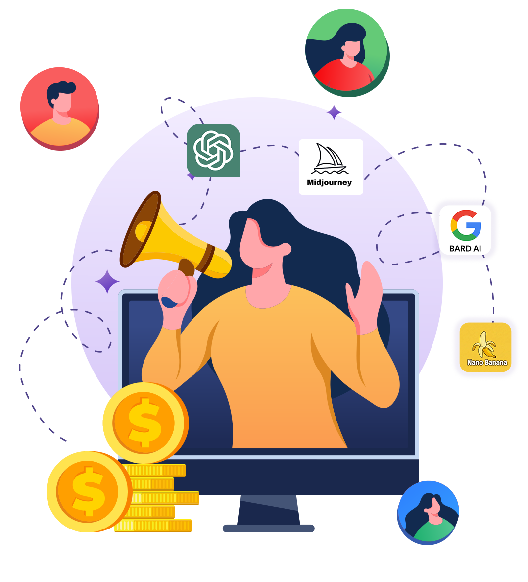 Everything your audience needs to create, sell, and scale AI content products — starting today.