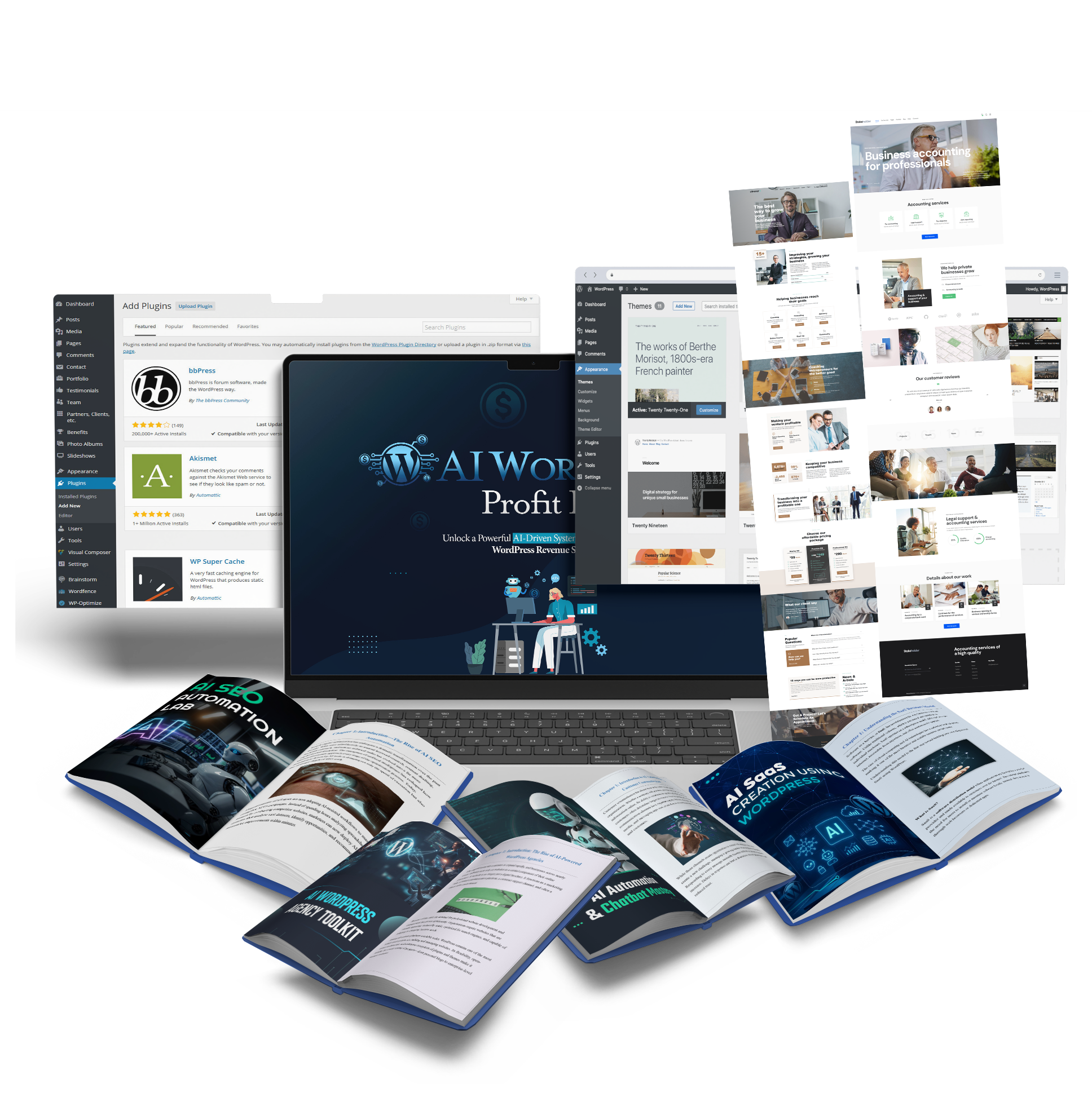 Every level is packed with AI + WordPress eBooks, premium plugins, professionally designed themes, DFY sales materials, and full rebranding rights.