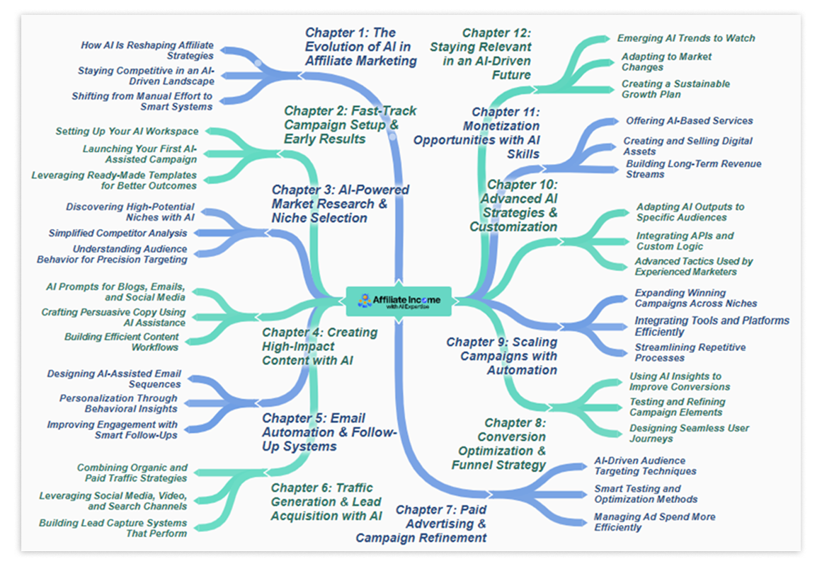 See the entire Affiliate Income System at a glance with this powerful visual mind map designed for clarity and fast execution.