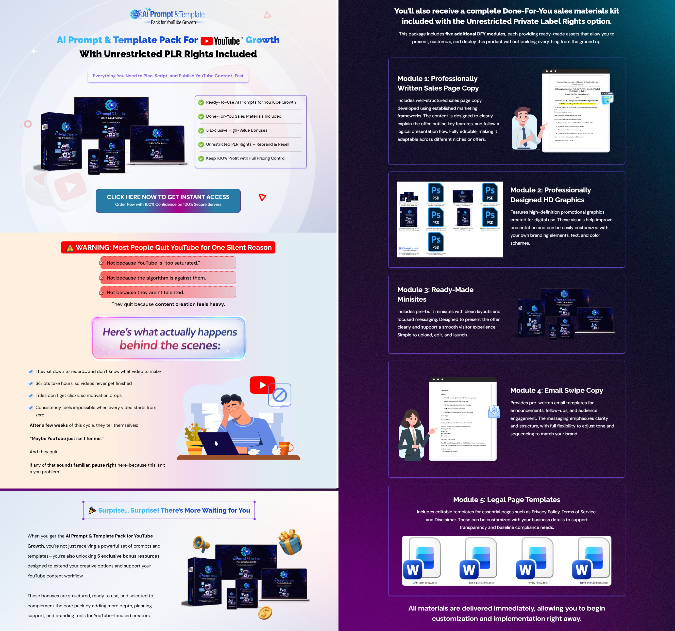This package includes five additional DFY modules, each providing ready-made assets that allow you to present, customize, and deploy this product without building everything from the ground up.