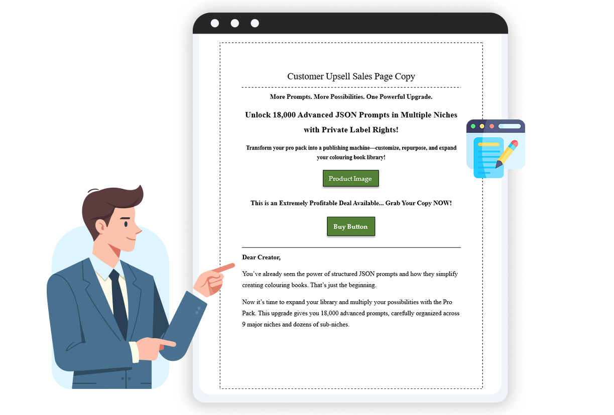 Carefully structured upsell copy designed to clearly present the offer, highlight key features, and guide buyers toward the next step. It saves you from writing from scratch and provides a solid foundation you can customize for your brand.