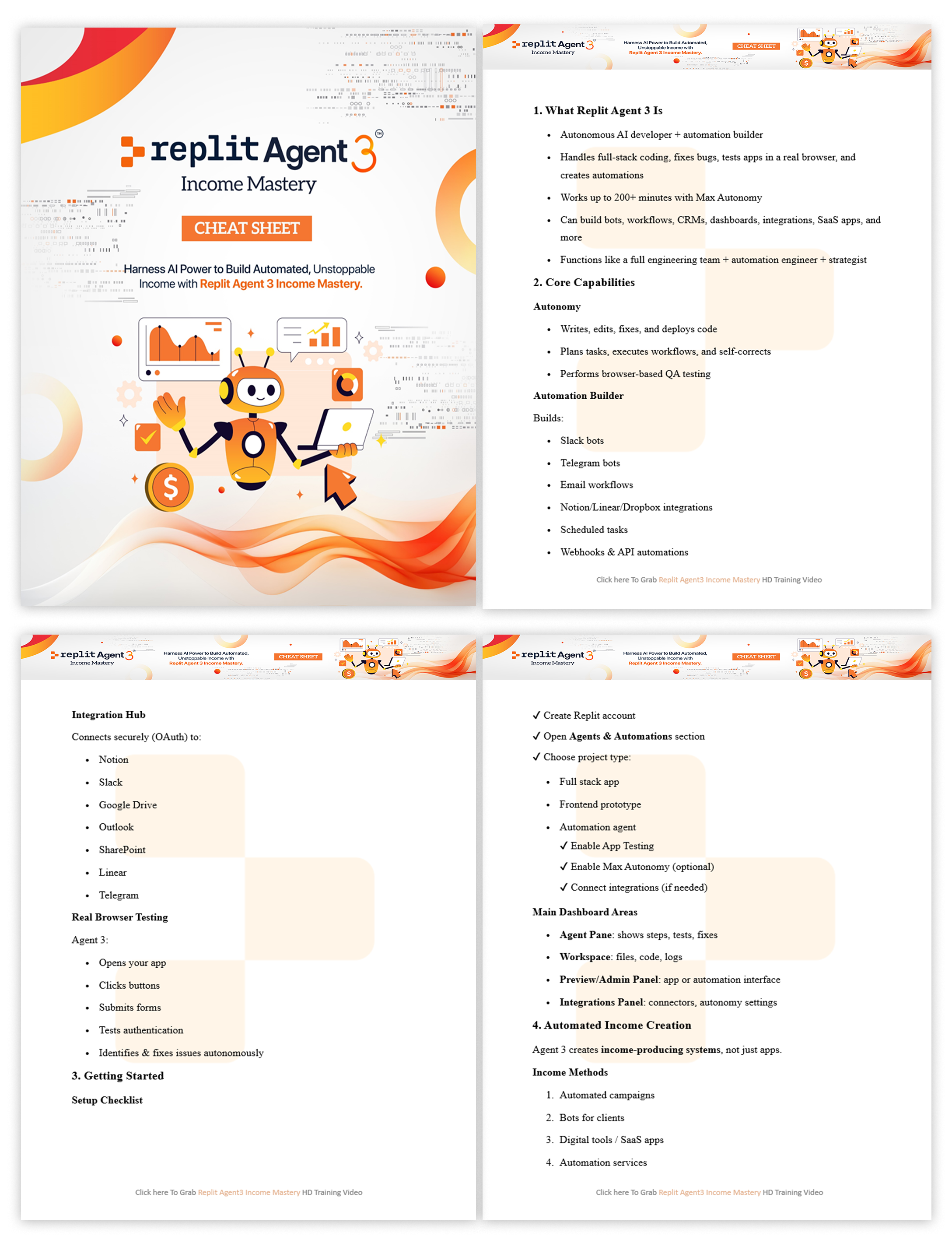 Learn step-by-step how to use Replit Agent 3 to build apps, automate tasks, and create multiple income streams-no coding skills needed. Includes 5 expert video lessons, a premium training guide