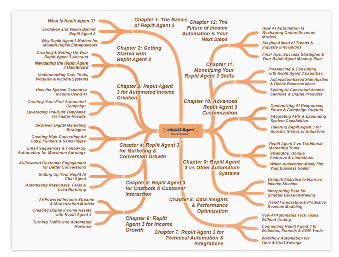 Get a complete, visual overview of the entire Replit Agent 3 Income Mastery program.